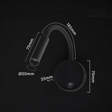 Nowość Oprawa LED V-TAC 3W CREE CHIP kinkiet czarny hotel łóżko włącznik VT-88063 3000K 120lm 3 lata gwarancji SKU 241506 VT-88063