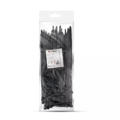 Opaski zaciskowe V-TAC 3.5x300mm czarna 18kg Nylon66 (opak. 100szt)
