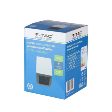 Oprawa V-TAC aluminiowa GU10 kostka kwadrat natynkowa czarna 142x100x100 VT-797-B SKU 3631 VT-797-B