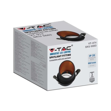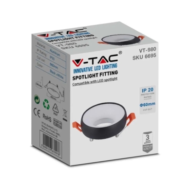 Oczko V-TAC GU10 wpuszczane okrągłe szczelne z szybą IP44 czarny VT-981 3 lata gwarancji SKU 6699 VT-981