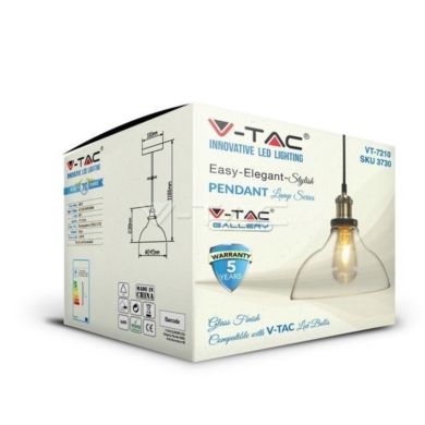 Oprawa zwieszana V-TAC loft vintage szkło transparent fi140 VT-7140-T 5 lat gwarancji SKU 3735 VT-7140-T