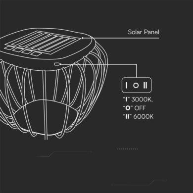 Przenośna lampa solarna druciak V-TAC 1W LED IP44 zmiana barwy czarna 42x30cm VT-7993 3000K-6000K 120lm SKU 23383 VT-7993