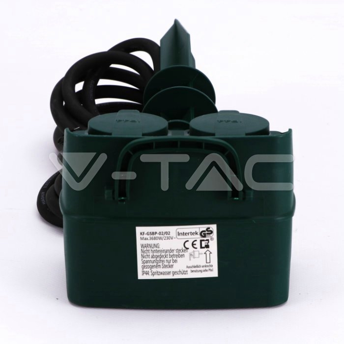 Gniazda ogrodowe V-TAC 2 gniazda 3m szpilka do wbijania IP44 schuko timer VT-1112-3
