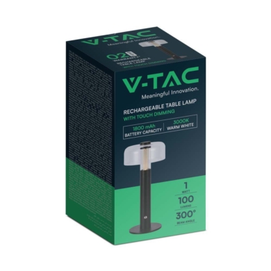 Lampka stołowa nocna V-TAC 1W LED 30cm ładowanie USB ściemnianie czarna VT-1049 3000K 100lm SKU 7940 VT-1049