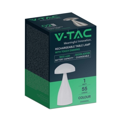 Lampka stołowa nocna V-TAC 1W LED 22cm ładowanie USB ściemnianie biała VT-1041 3000K-6000K 55lm SKU 7896 VT-1041