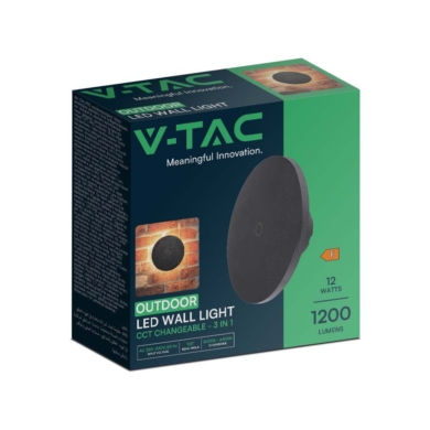 Oprawa ścienna kinkiet 12W V-TAC okrągły czarny CCT ściemnialny VT-83012 3000K-6400K 1200lm SKU 7853 VT-83012