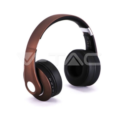 Bezprzewodowe słuchawki V-TAC bluetooth regulowany pałąk 500mAh brązowe VT-6322-A SKU 7732 VT-6322-A