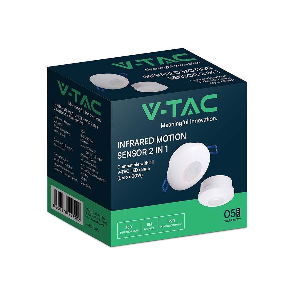 Czujnik ruchu 360st podczerwień natynkowy/podtynkowy 2w1 biały 600W LED V-TAC VT-81044 5 lat gwarancji