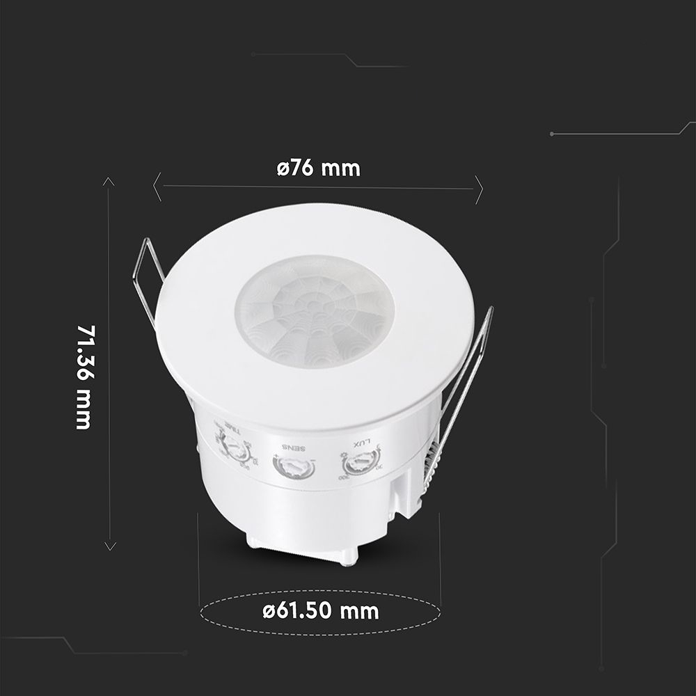 Czujnik ruchu 360st wpuszczany okrągły biały 1000W LED IP54 V-TAC VT-81042 5 lat gwarancji