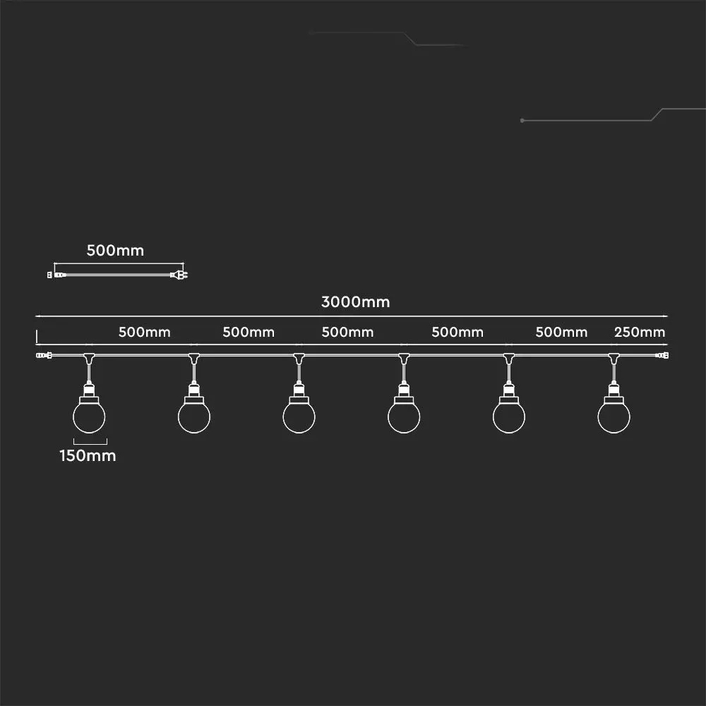 Girlanda ogrodowa 6xE27 3metry czarny MAT IP65 V-TAC VT-720S 5 lat gwarancji
