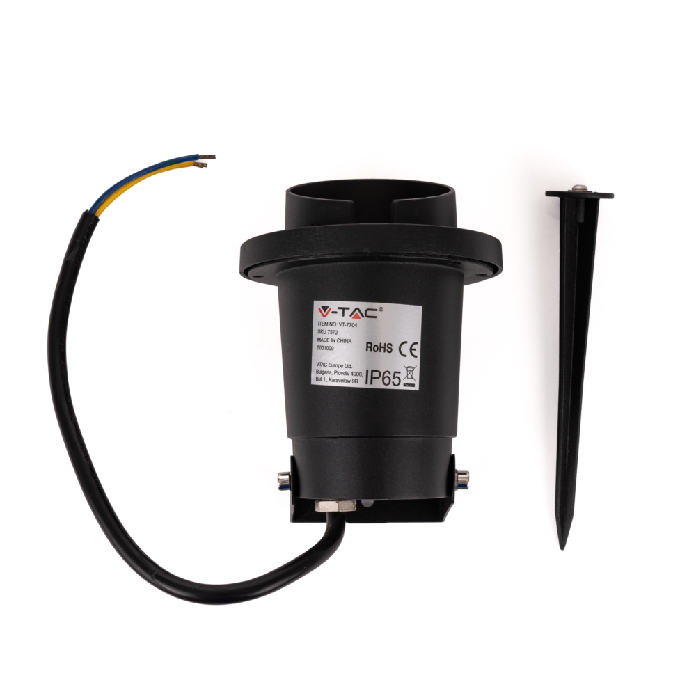 Oprawa gruntowa ogrodowa wbijana aluminium GU10 czarna z daszkiem IP65 V-TAC VT-7704 3 lata gwarancji