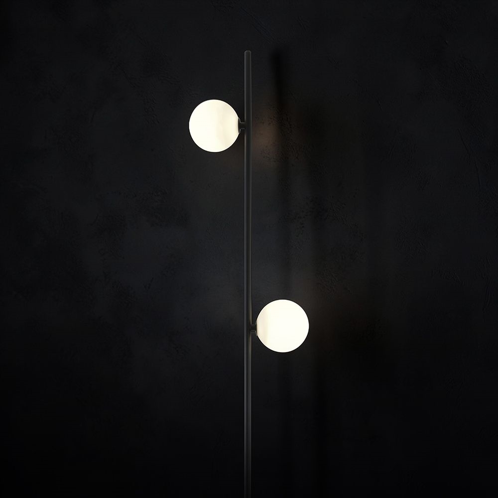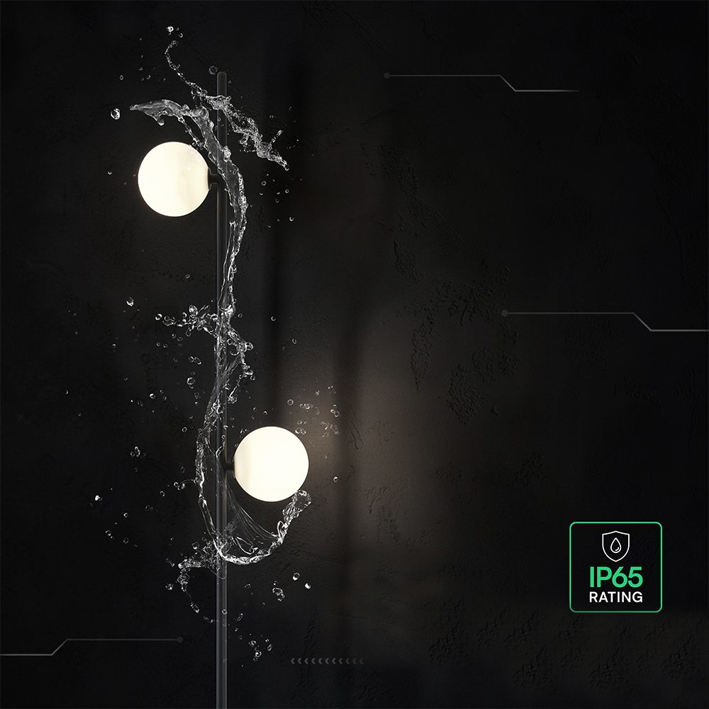 Nowoczesna wbijana do ziemi lampa ogrodowa LED o minimalistycznej, pionowej konstrukcji, zaprojektowana z myślą o oświetleniu przestrzeni zewnętrznych. Czarna, elegancka obudowa w połączeniu z dwoma kulistymi punktami świetlnymi tworzy estetyczną i funkcjonalną oprawę, idealnie wpisującą się w nowoczesne aranżacje ogrodów i terenów wokół budynków.