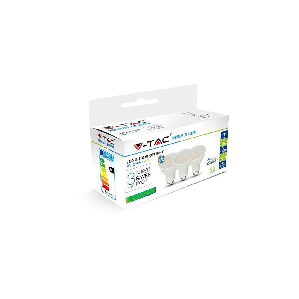 Żarówka LED V-TAC 4,5W GU10 SMD (opak. 3szt) VT-2095 3000K 400lm