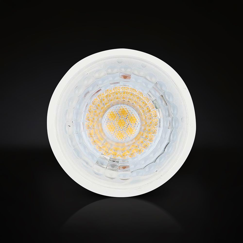 Żarówka LED V-TAC z trzonkiem GU10 posiada gwarancję 6 lat i wykorzystuje chipy CREE nowej generacji które zapewniają wysoką niezawodność, długi czas życia oraz doskonałą jakość światła. CREE LED to światowy lider technologii LED z ponad 35 letnim doświadczeniem i ponad 1800 patentami dzięki czemu żarówka oferuje stabilną pracę i wysoką wydajność. Model o mocy 4.5W stanowi energooszczędny zamiennik tradycyjnej żarówki halogenowej 50W. Strumień świetlny 345 lumenów oraz kąt świecenia 38 stopni sprawiają że światło jest precyzyjne i dobrze ukierunkowane. Ciepła barwa 3000K tworzy przyjemny klimat w pomieszczeniach. Żarówka wykonana jest z wytrzymałych materiałów zapewniających lekkość i łatwy montaż. Dzięki technologii CREE oraz długiemu czasowi życia 25000 godzin idealnie sprawdza się w hotelach, barach, lokalach usługowych, oświetleniu mieszkalnym oraz na stoiskach wystawienniczych.
