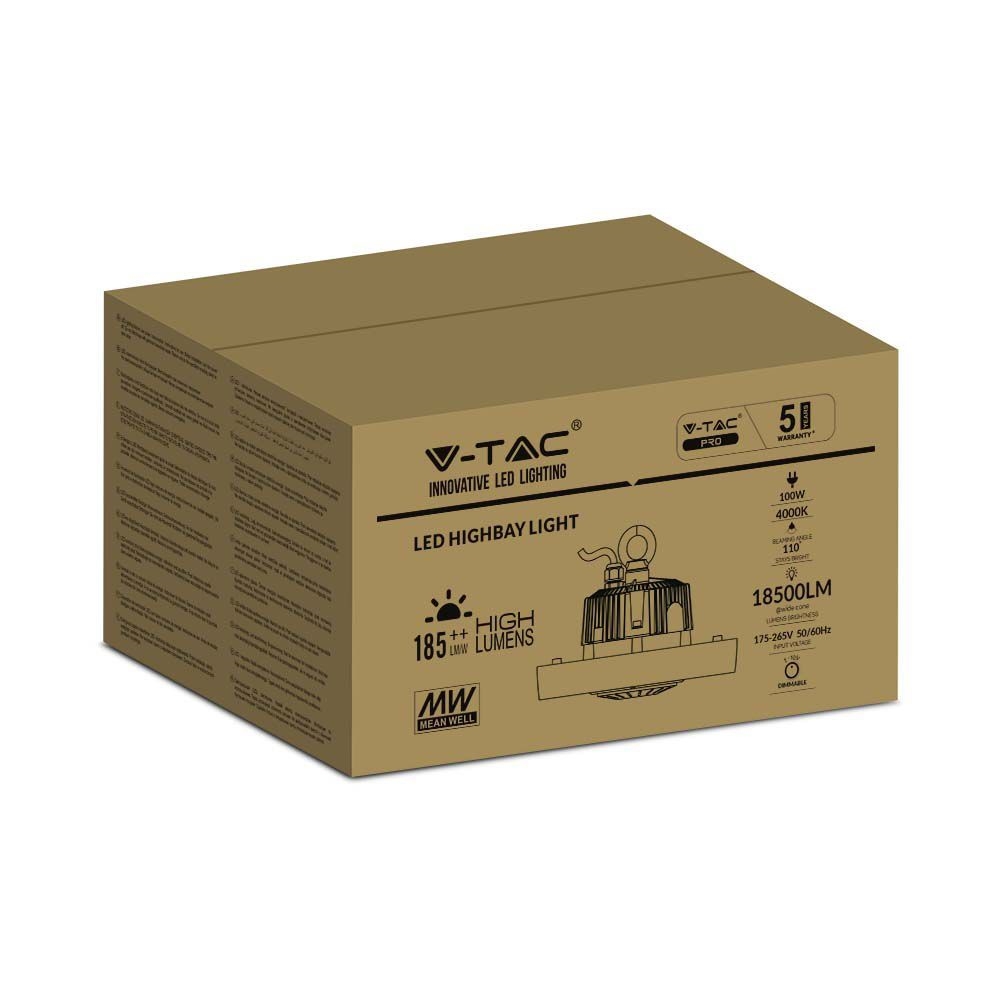 Oprawa LED high bay V-TAC MeanWell driver 100W 185Lm/W VT-9119 4000K 18500lm 5 lat gwarancji