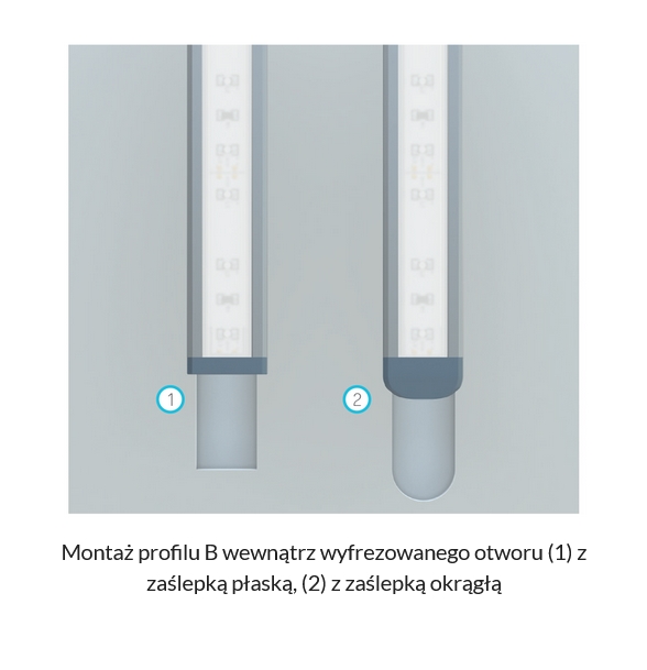Profil aluminiowy LUMINES B do wpuszczania w wyfrezowane na powierzchni otwory.