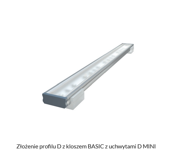 - uchwyty montażowe do profili z kloszem BASIC oraz z kloszem HIGH w 3 odmianach kolorystycznych - transparentny, biały, czarny
