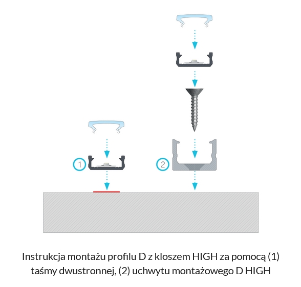 - uchwyty montażowe do profili z kloszem BASIC oraz z kloszem HIGH w 3 odmianach kolorystycznych - transparentny, biały, czarny