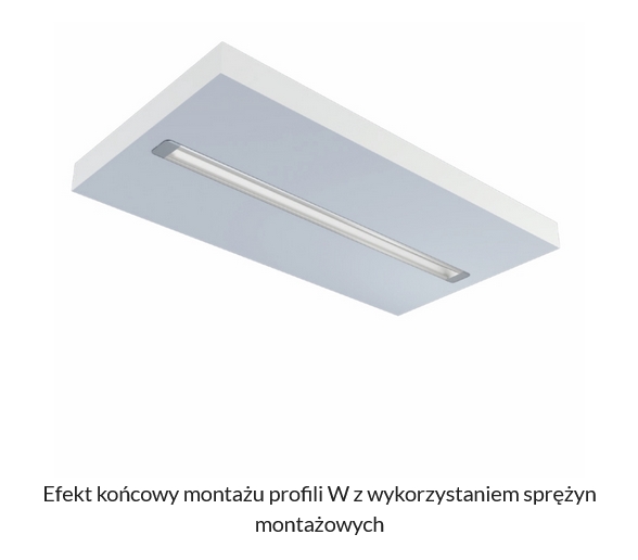 Profil typ W LUMINES, wpuszczany. Do montażu w lekkich konstrukcjach z zastosowaniem sprężyn montażowych
