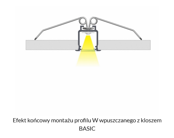 Profil typ W LUMINES, wpuszczany. Do montażu w lekkich konstrukcjach z zastosowaniem sprężyn montażowych