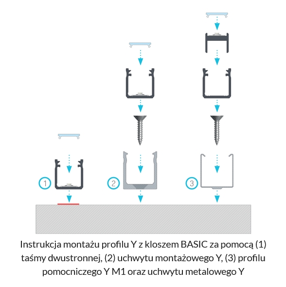 - uchwyty montażowe do profili z kloszem BASIC w 3 odmianach kolorystycznych - transparentny, biały, czarny.