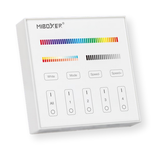 4-strefowy pilot B4 obsługiwany dotykowo. Umożliwia zmianę koloru, nasycenia koloru, temperatury barwowej oraz jasności przypisanych urządzeń. Montowany magnetycznie.