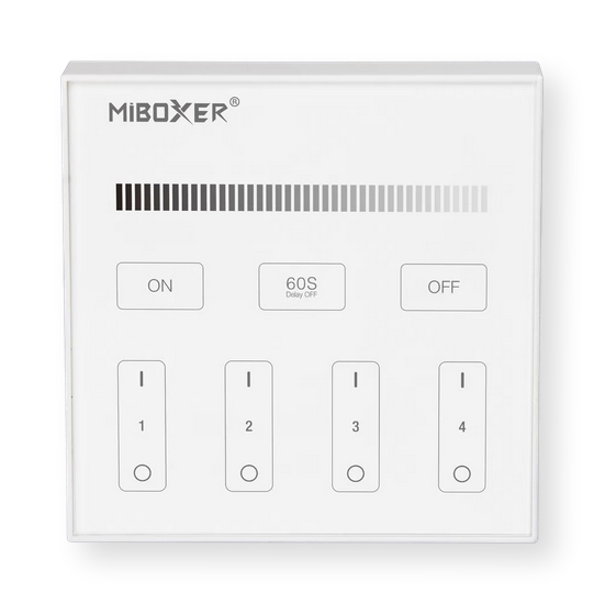4-strefowy pilot B5 obsługiwany dotykowo. Umożliwia zmianę jasności przypisanych urządzeń. Montowany magnetycznie.
