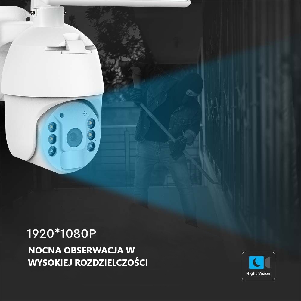 Kamera zewnętrzna V-TAC WI-FI HD smart solarna obrotowa PTZ IR biała VT-11024