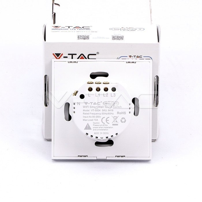 Włącznik szklany smart WI-FI V-TAC podwójny biały Amazon Alexa Google Home Nest VT-5004