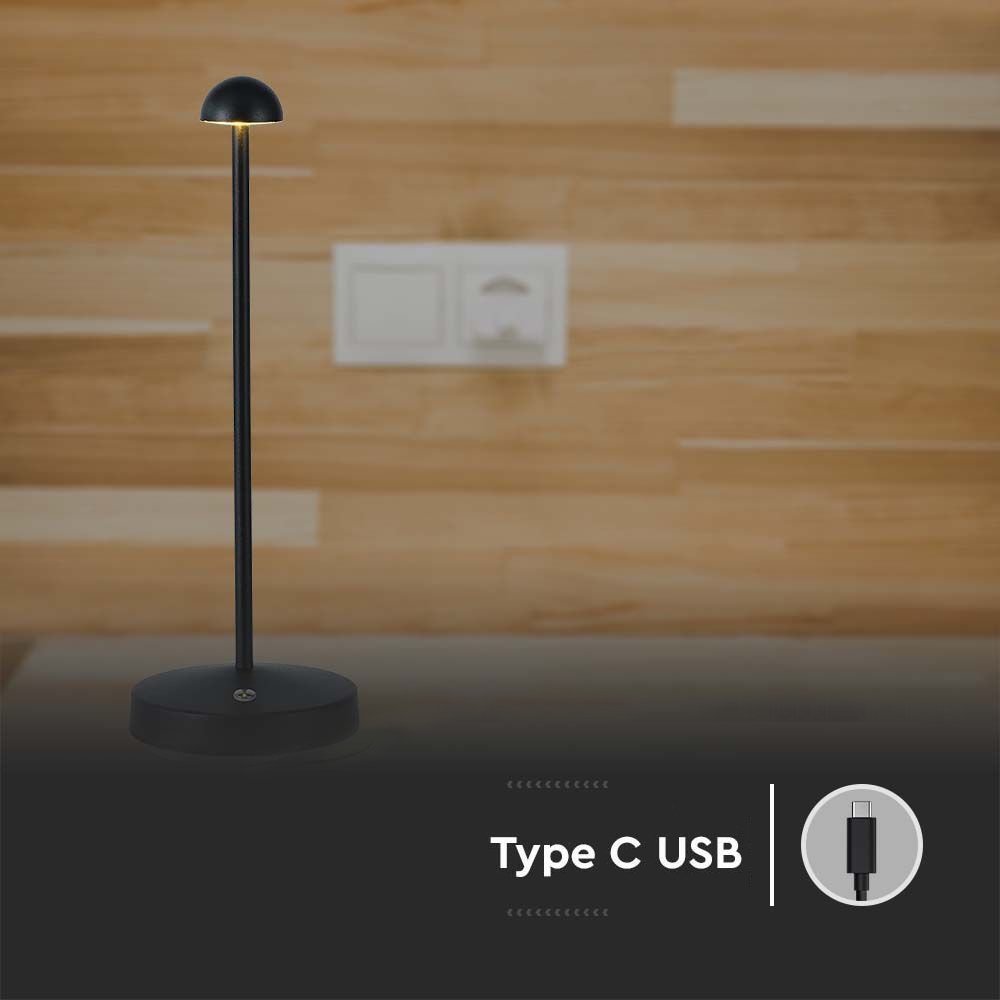 Lampka stołowa nocna V-TAC 3W LED 29cm ładowanie USB ściemnianie czarna VT-1073 3000K-6000K 130lm