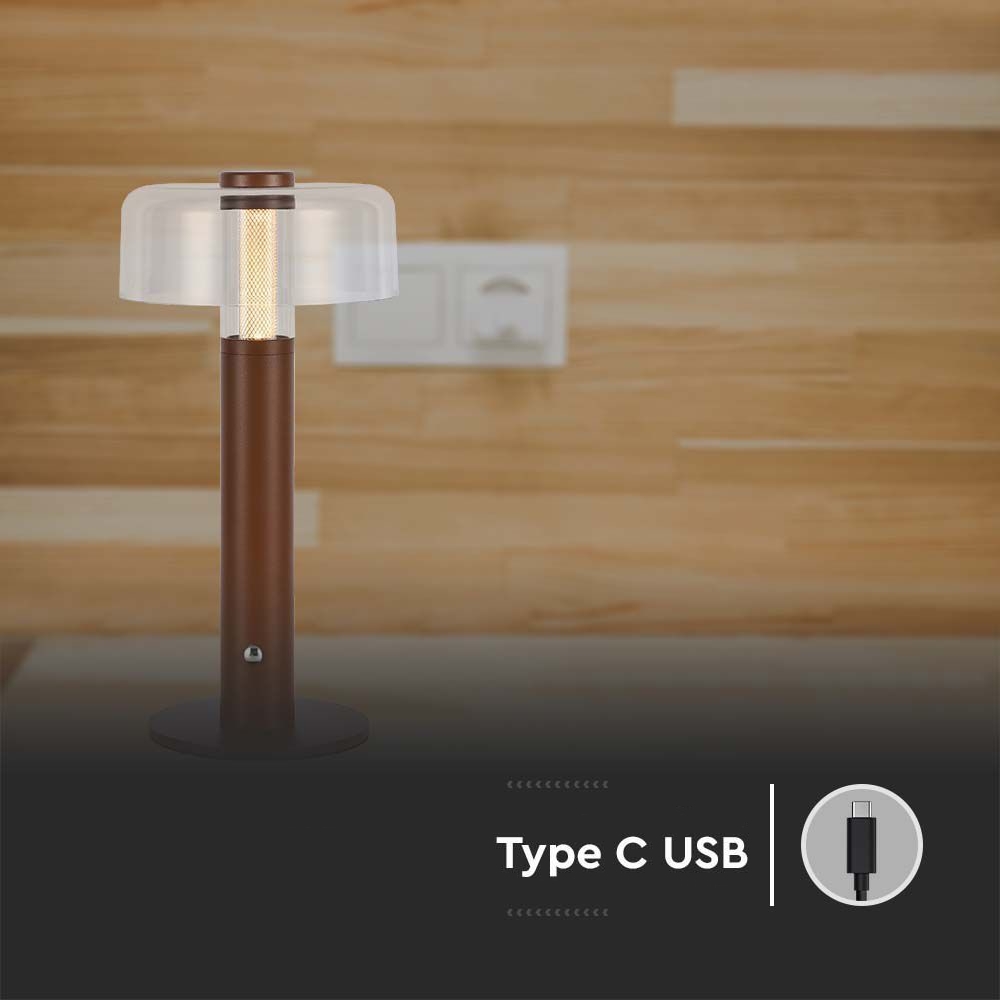 Lampka stołowa nocna V-TAC 1W LED 30cm ładowanie USB ściemnianie brązowa VT-1049 3000K 100lm