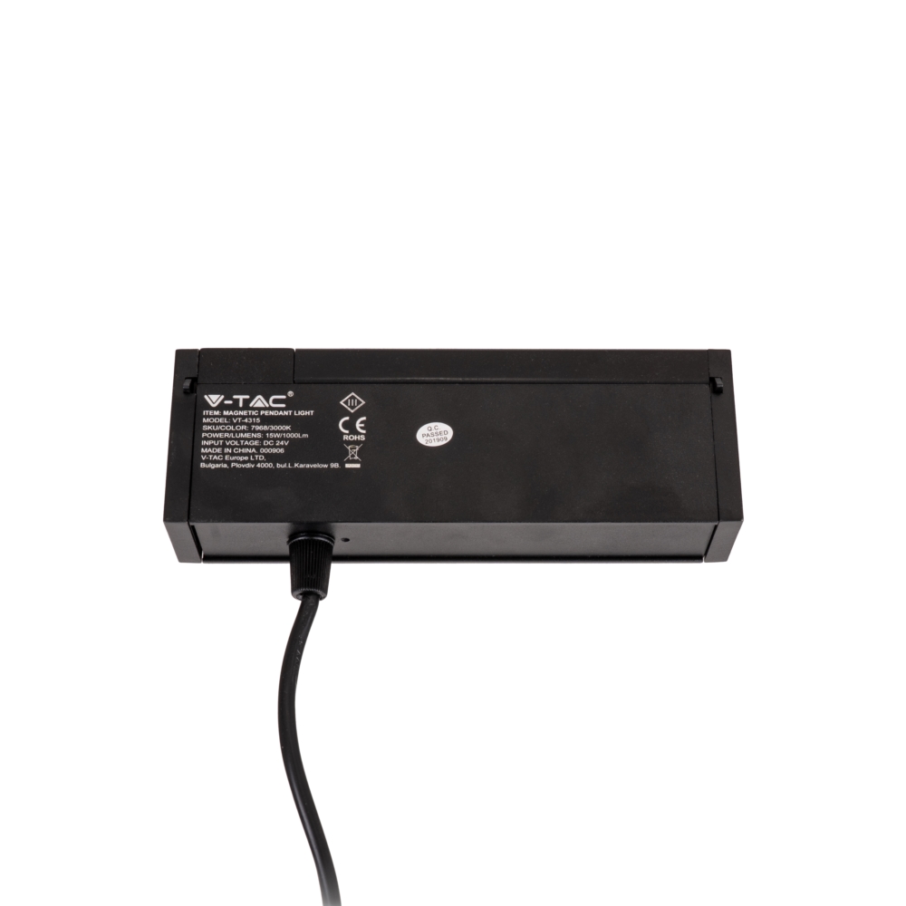 Oprawa szynoprzewód magnetyczny 24V V-TAC 15W LED czarna CRI90+UGR19 VT-4315 4000K 1000lm 3 lata gwarancji