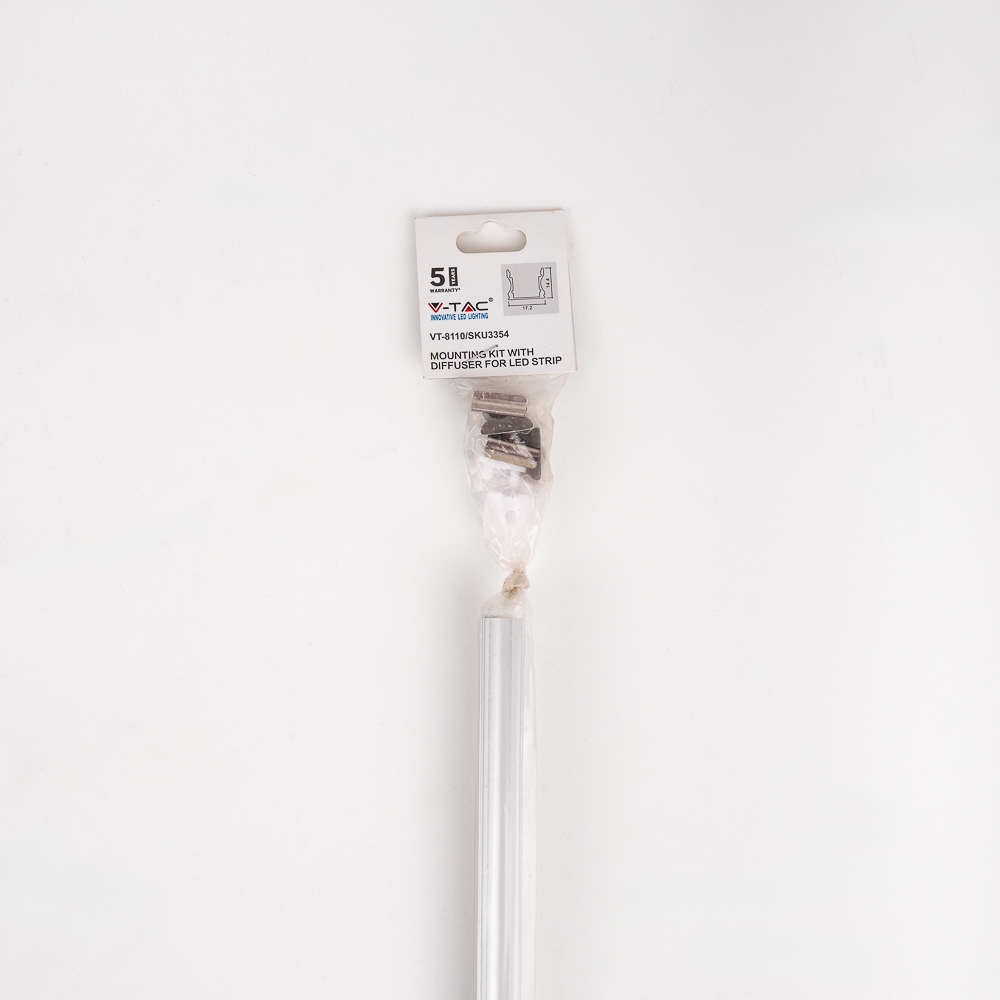 W zestawie, profil 2 metry, zaślepki końcowe, uchwyty montażowe oraz klosz mleczny
