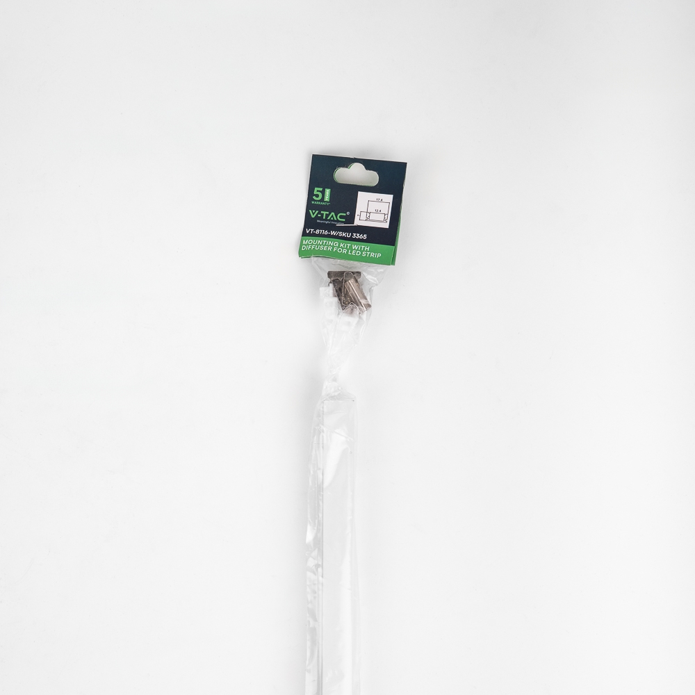 W zestawie, profil 2 metry, zaślepki końcowe, uchwyty montażowe oraz klosz mleczny