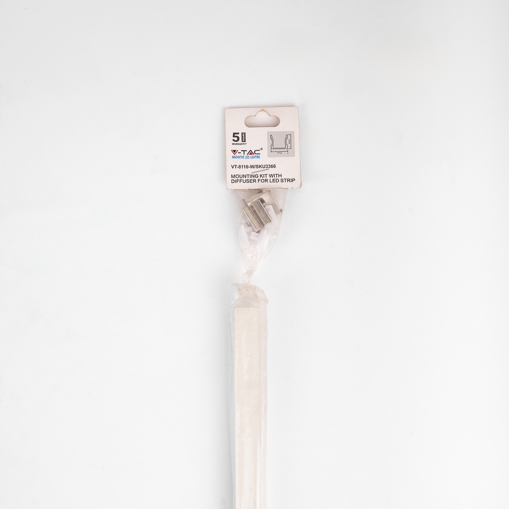 W zestawie, profil 2 metry, zaślepki końcowe, uchwyty montażowe oraz klosz mleczny
