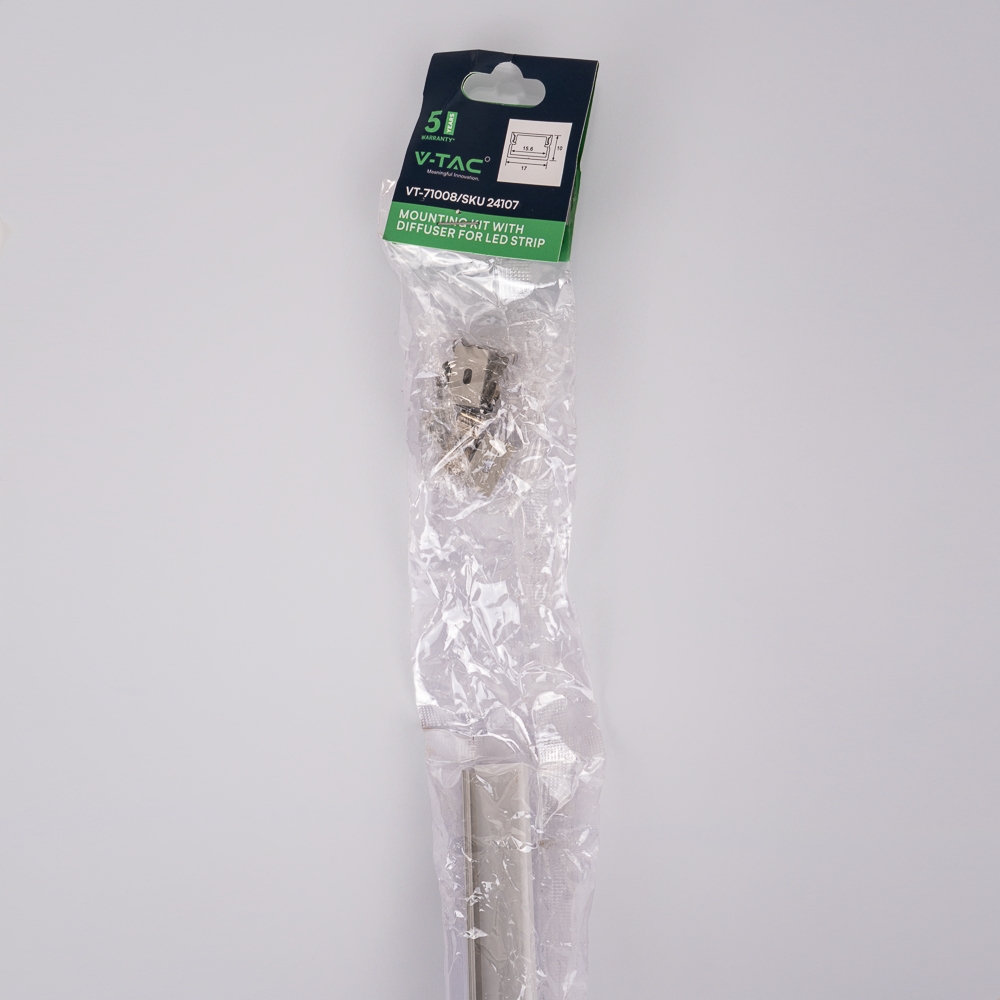 Profil do LED zestaw, ALU anodowany V-TAC 2mb klosz mleczny 17x10mm VT-71008 5 lat gwarancji