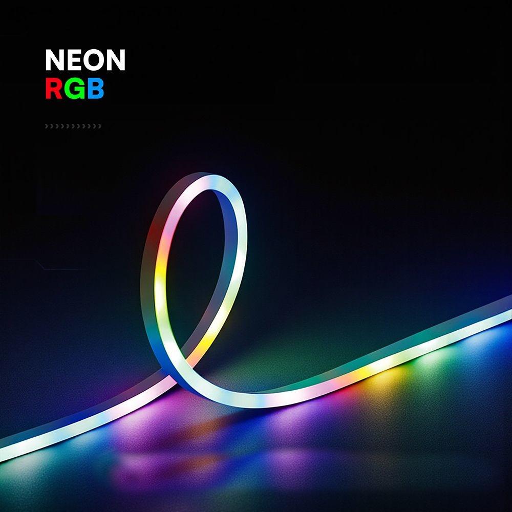 Neon LED RGB Magic o długości 5 metrów zasilany przez USB, przeznaczony do dekoracyjnych instalacji oświetleniowych. Wykonany z wytrzymałych materiałów, zapewniających lekkość i łatwy montaż. Neon korzysta ze stabilnej technologii, co zapewnia lepszą niezawodność i długi czas życia. Może być sterowany za pomocą aplikacji LotusLamp X, pilota lub przycisku na kontrolerze USB. Dzięki elastycznej konstrukcji doskonale sprawdza się w miejscach o ograniczonej przestrzeni montażowej. Idealny do podświetlania krawędzi, mebli, lad, półek, wnęk i wielu innych zastosowań dekoracyjnych i imprezowych.