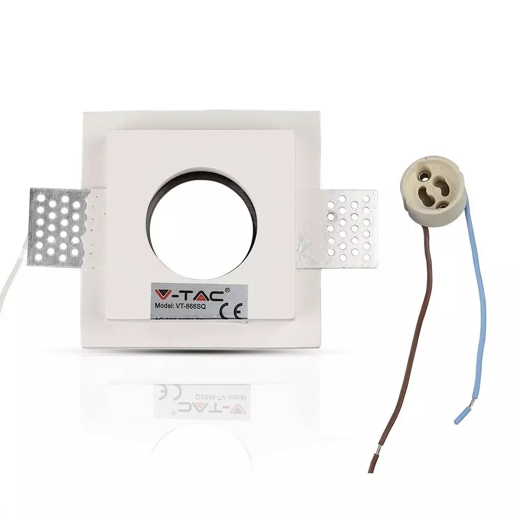 Oczko V-TAC gips GU10 kwadrat wpuszczane G-K białe+chrom VT-866-CSQ 5 lat gwarancji