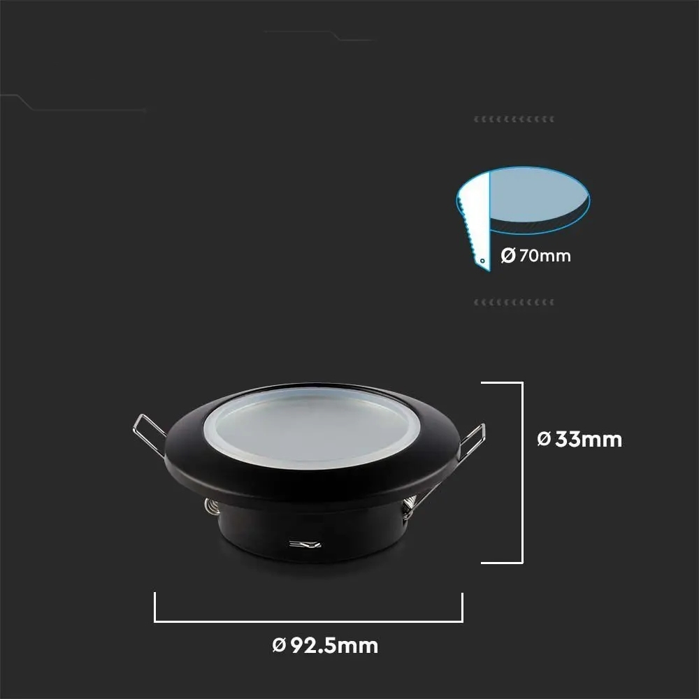 Oczko V-TAC GU10 wpuszczane okrągłe szczelne z szybą IP44 czarny VT-981 3 lata gwarancji