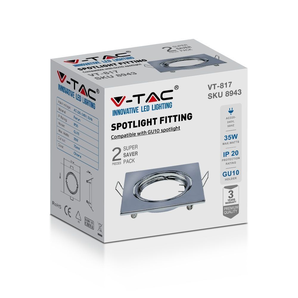 Oczko V-TAC GU10 kwadrat ruchome chrom (opak. 2 szt) VT-817-SQ-CH 3 lata gwarancji