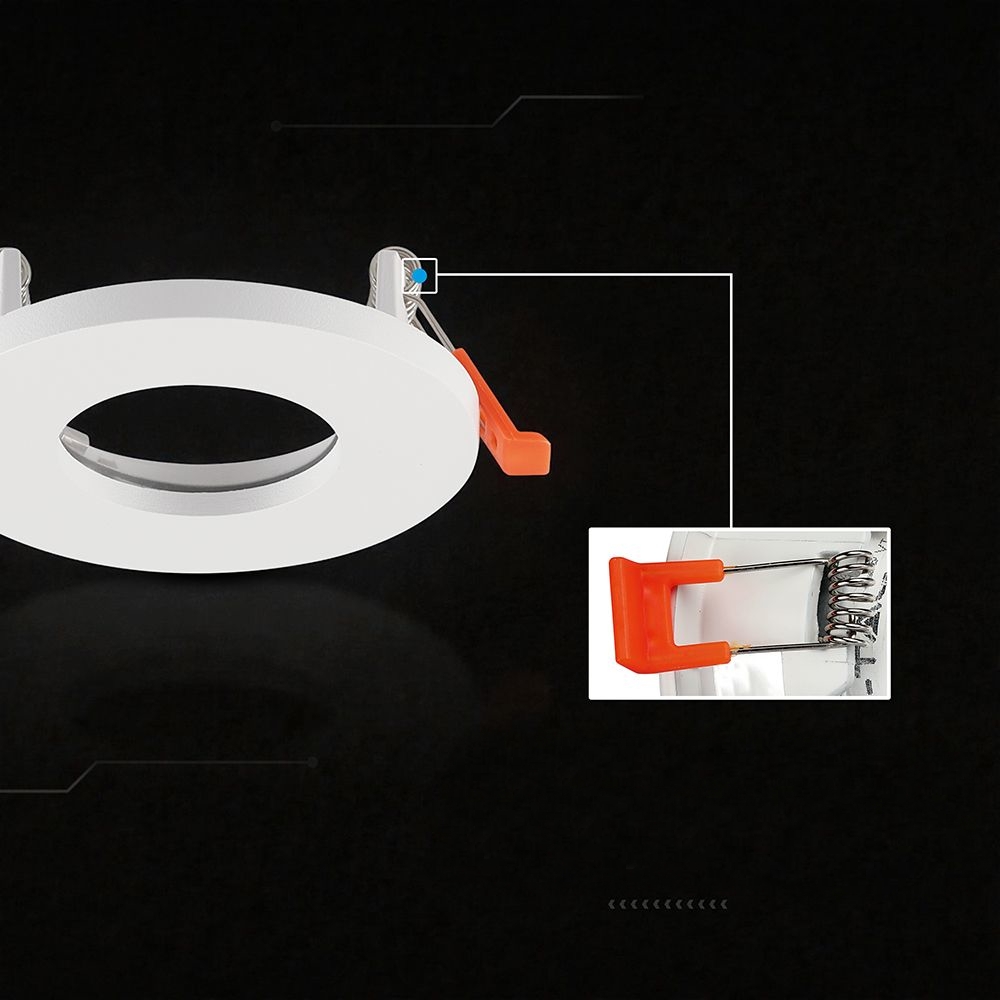 Nowoczesna oprawa wpuszczana GU10 w eleganckim białym wykończeniu to uniwersalne rozwiązanie oświetleniowe do wnętrz mieszkalnych i komercyjnych. Minimalistyczny design sprawia, że doskonale komponuje się z różnymi aranżacjami – od nowoczesnych po klasyczne.