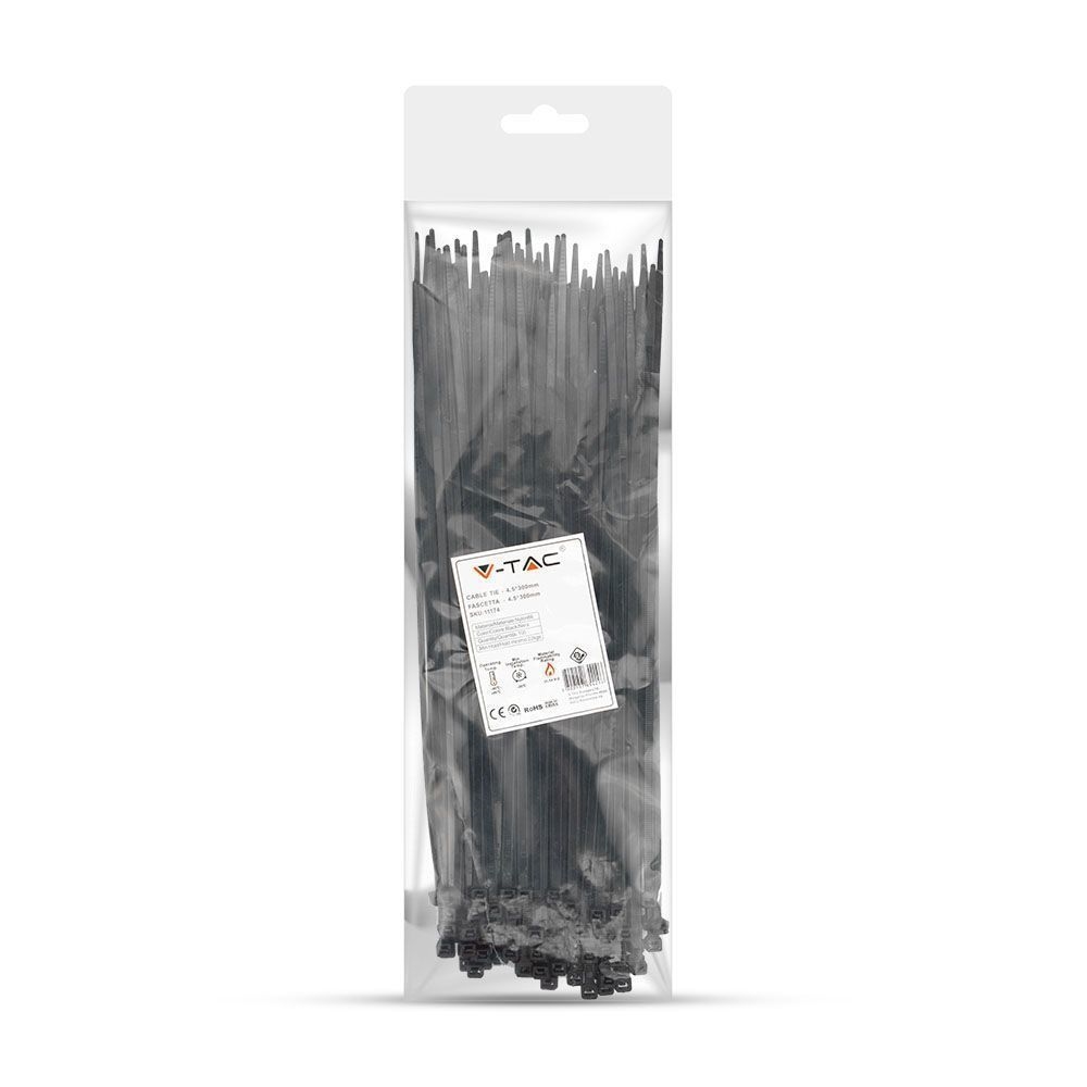 Opaski zaciskowe V-TAC 4.5x300mm czarna 22kg Nylon66 (opak. 100szt)