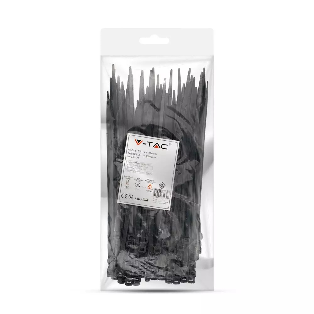 Opaski zaciskowe V-TAC 4.8x200mm czarna 22kg Nylon66 (opak. 100szt)