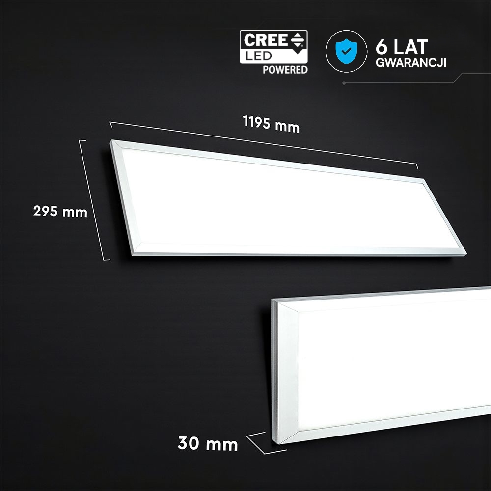 Panel natynkowy o wymiarach 1220x300mm z chipem CREE to nowoczesne i eleganckie rozwiązanie oświetleniowe, charakteryzujące się ultra cienkim designem oraz wysoką skutecznością świetlną wynoszącą 110 Lm/W. Produkt ten jest łatwy w instalacji zarówno podtynkowo, jak i natynkowo, bez potrzeby stosowania dodatkowych akcesoriów. Panel może być również montowany za pomocą linek, dostępnych osobno. Dzięki braku promieniowania IR oraz szkodliwych substancji, takich jak ołów i rtęć, jest przyjazny dla środowiska. Wybrane modele oferują funkcję ściemniania. Produkt objęty jest 6-letnią gwarancją.