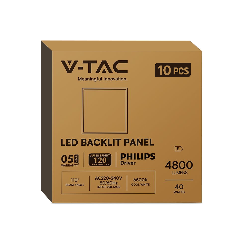 Panel LED V-TAC 40W 60x60 backlight 33mm 120Lm/W zasilacz Philips VT-61040 4000K 4800lm 5 lat gwarancji