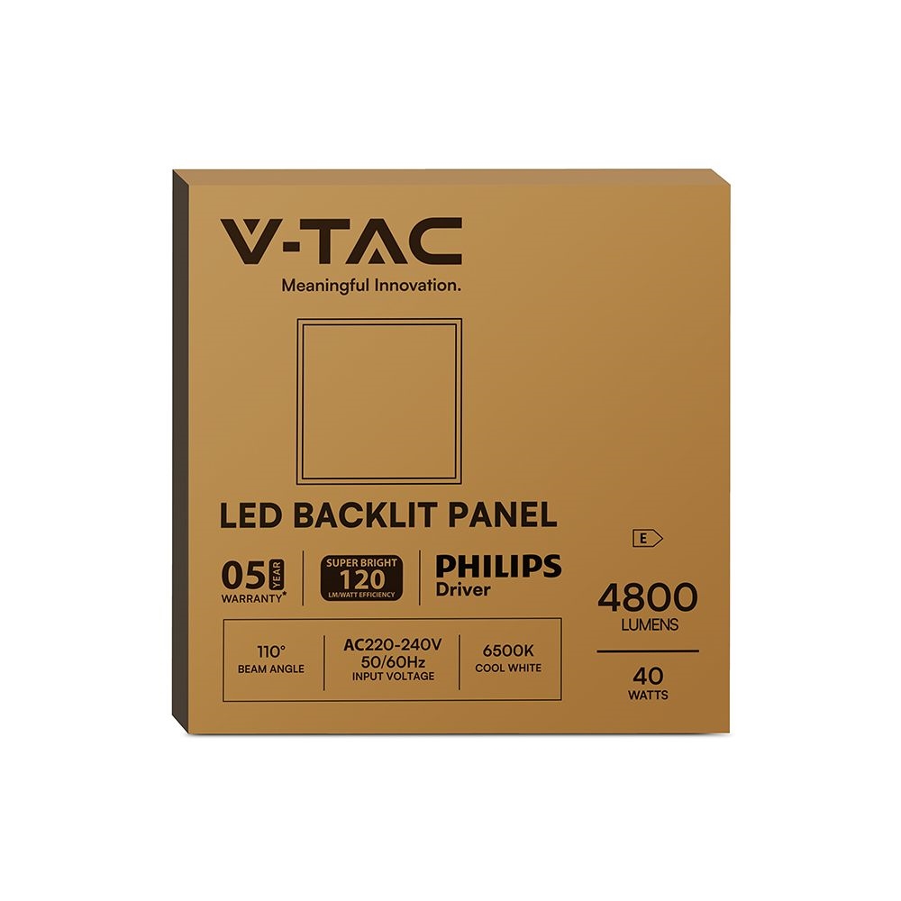 Panel LED V-TAC 40W 60x60 backlight 33mm 120Lm/W zasilacz Philips VT-61040 6500K 4800lm 5 lat gwarancji