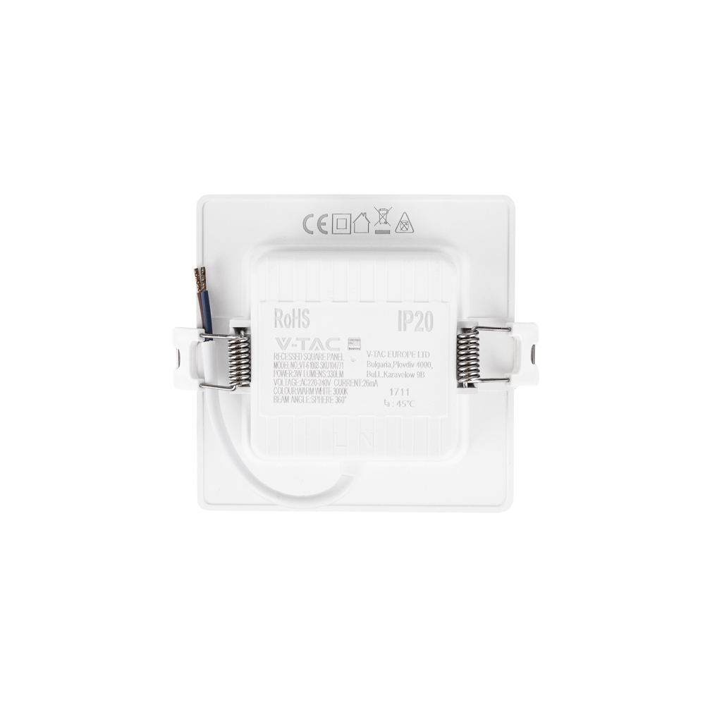 Panel wpuszczany downlight V-TAC 3W LED SAMSUNG CHIP kwadrat 90x90mm VT-61003SQ-S 3000K 330lm 5 lat gwarancji
