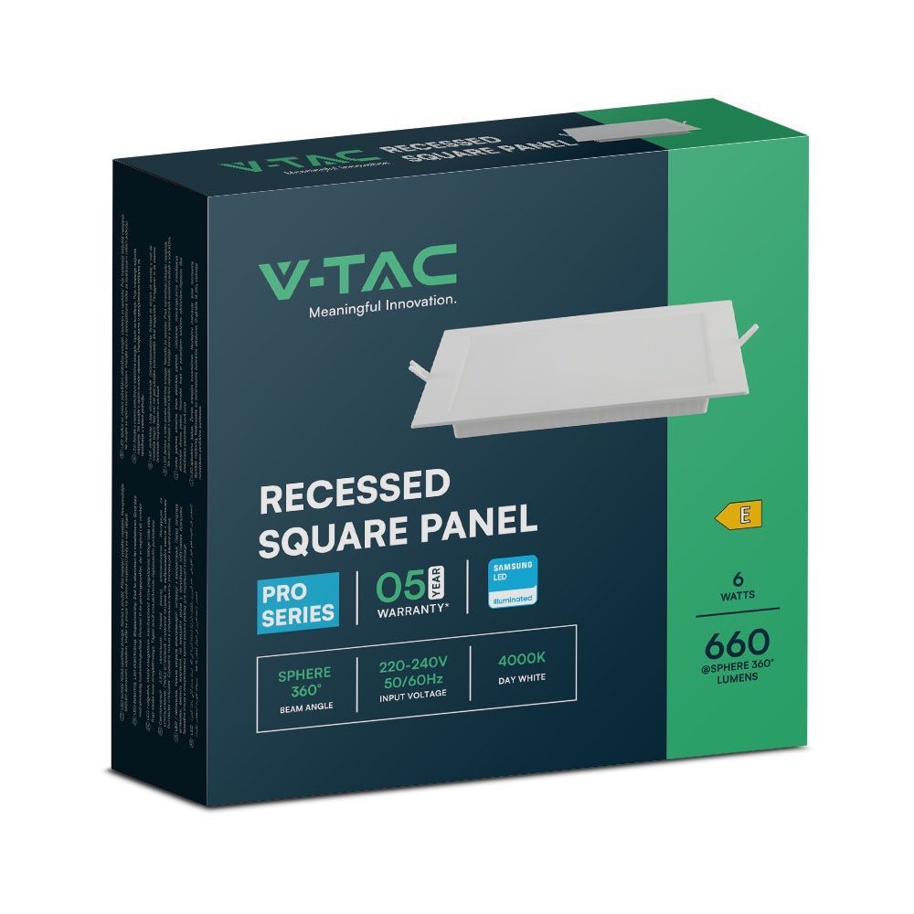 Panel wpuszczany downlight V-TAC 6W LED SAMSUNG CHIP kwadrat 120x120mm VT-61006SQ-S 4000K 660lm 5 lat gwarancji