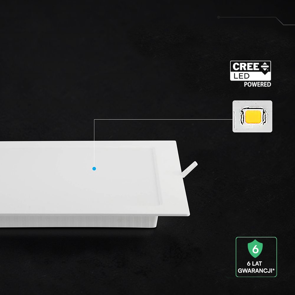 • Nowa generacja paneli LED wpuszczanych z technologią chipów CREE, zapewniających wysoką niezawodność, stabilną pracę oraz żywotność do 30 000 godzin. CREE LED to światowy lider technologii oświetleniowej, gwarantujący wysoką wydajność, trwałość oraz powtarzalne parametry świetlne.