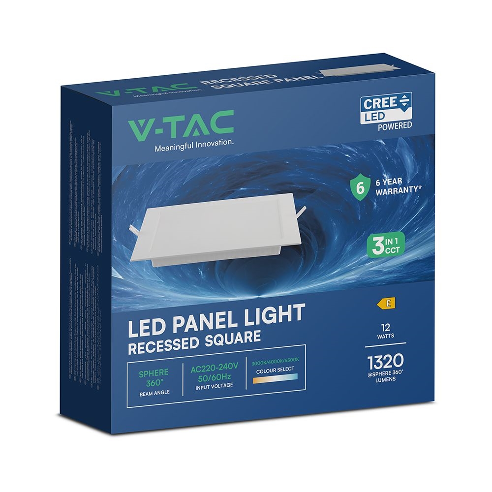 Panel wpuszczany downlight V-TAC 12W LED CREE CHIP kwadrat 170x170mm VT-61012CCT 3000K-4000K-6500K 1320lm 6 lat gwarancji